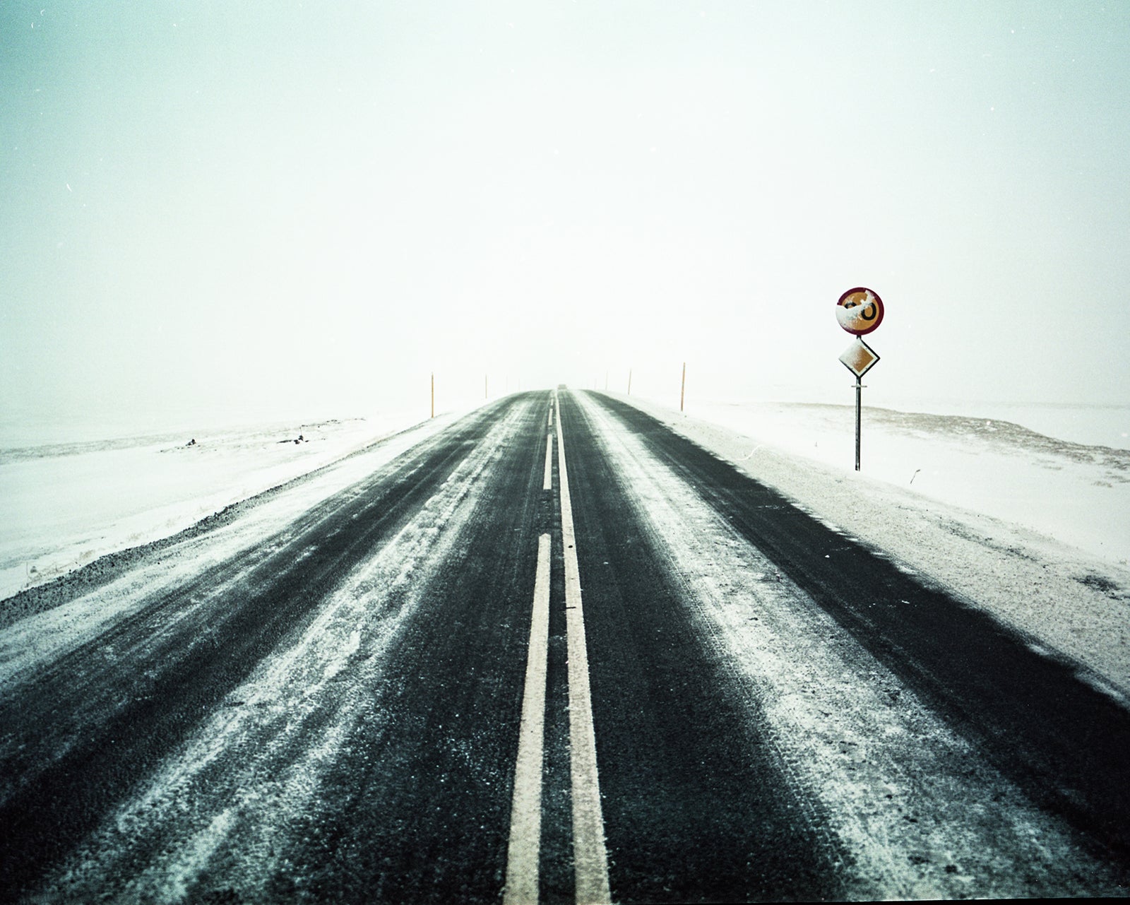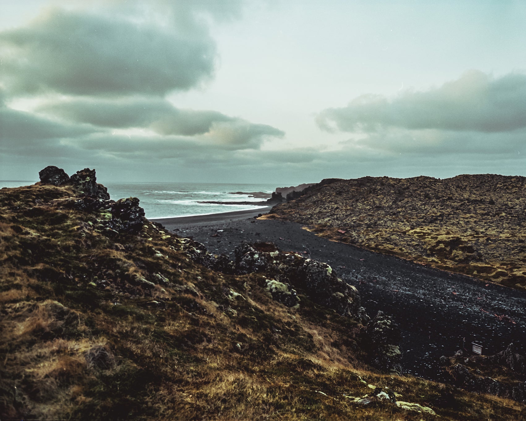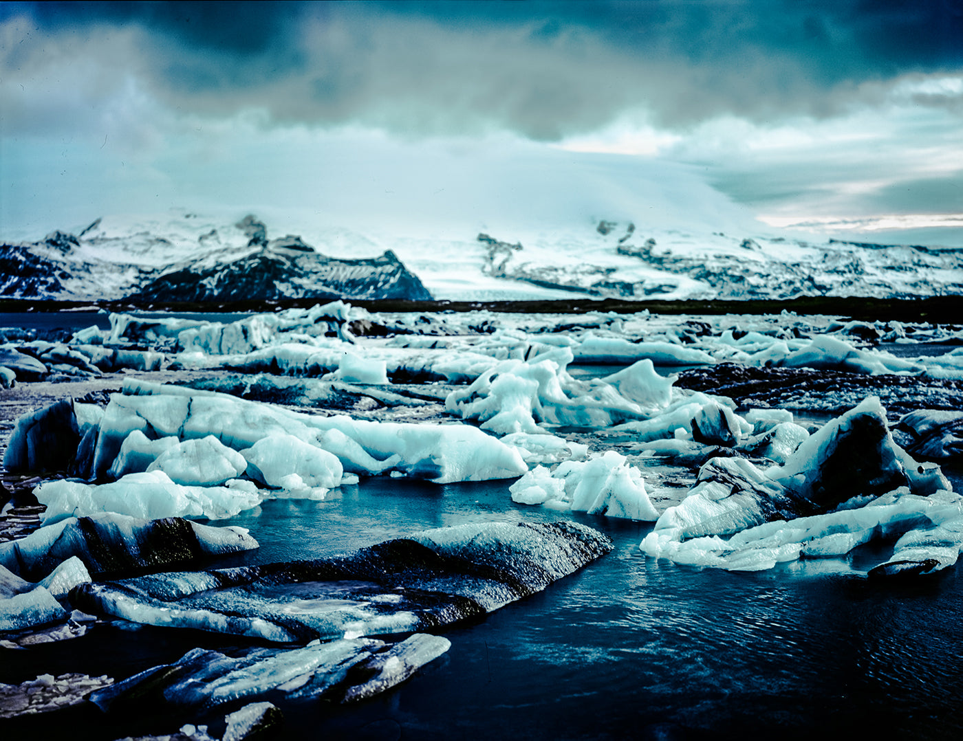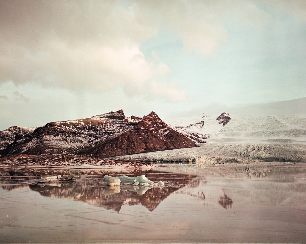 The two-hour drive through Hof to Jökulsárlón was flecked with gale force winds and icy roads. We got there whilst the sun was still holding up and it looked beyond glorious, well worth the tense drive. The only frustration was just how many people were there, which made it a challenge to get a clear shot. I fought my way through the wind once more, this time with the Intrepid over my shoulder, to the highest point I could find. I held the tripod steady but the whole thing was quite rushed as the weather was changing rapidly. I got two frames quickly before we had to get back in the car as a sleet storm hit but I was pretty pleased with the images. It’s worth noting that I gravely dislike Velvia and have edited the colour tones away from the typical Velvia look - I’m not a purist when it comes to editing film and I tend to leave other stocks to their tone otherwise - I just really REALLY dislike Velvia but was saving my very limited stash of Portra.