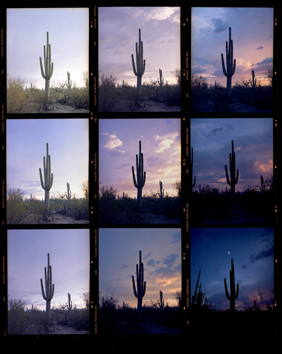 "I chose to shoot large format because of the challenge. I had shot large format in the past, but never exclusively for one dedicated project. I knew I wanted to print large images as well, so the larger film size was ideal for that. Having an Intrepid was a major advantage for me as well. Lugging my equipment all over the desert was much easier with such a lightweight camera. Shooting large format definitely produced the challenges I was after. With so many steps to remember, it was important for me to stay focused. For example, I was in Saguaro National Park one evening and fired off two shots: one of a beautifully coloured desert sky, then another once the moon came out. As I was packing up to leave, I had a moment of panic after I realised I had just exposed the same side of the film holder twice by accident. The sky had become cloudy and I lost any opportunity to re-shoot. I left and headed home feeling defeated. The next day, I came back to the exact same spot as the night before and thankfully the sky and lighting conditions remained almost identical to the previous evening and I was sure to get my shots right that time."