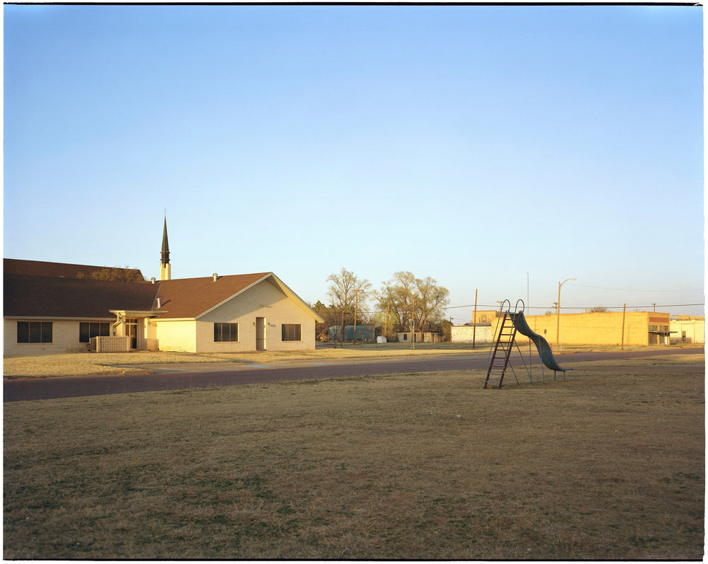 But in the past couple of decades, Lee has also become an avid and prolific film photographer, exploring the American landscapes of his adopted home state of Texas with a Graflex Speed Graphic and expired colour Kodak films for his book A PLAIN VIEW, and more recently putting together a series of photographs shot in Oklahoma for an exhibition at the Philbrook Museum of Art, opening May 31. He’s a founder of Film Photographic, an Instagram account and “co-curated community gallery and resource page by and for film photographers,” and a huge champion of large format photography. Lee’s photos seem to freeze time in a way that’s remarkable even in a medium where it’s par for the course—they often depict small-town scenes, absent of people, imbued with a calmness that’s sometimes eerie, other times deeply comforting.