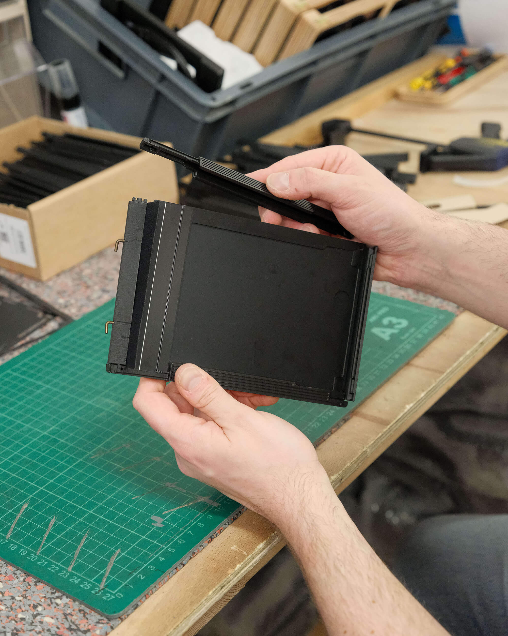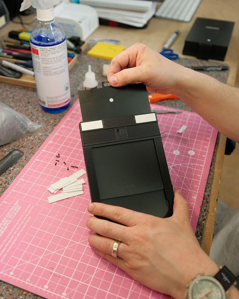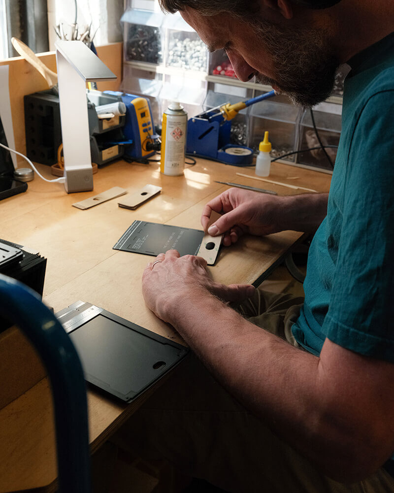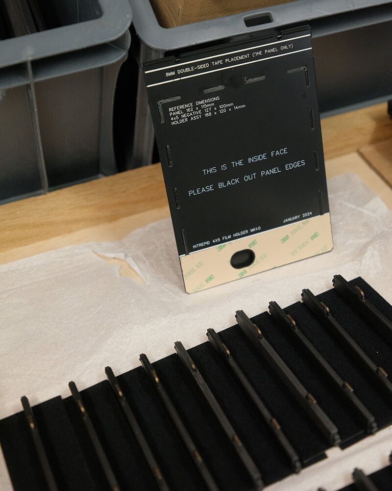 William, our design manager, worked on this project for a year. spending months prototyping and testing before making a small batch for Intrepid team members and selected testers to try. Taking inspiration from older film holder designs & feedback from the testers, we're confident that this is the finest and most thoughtfully designed 4x5 film holders available.