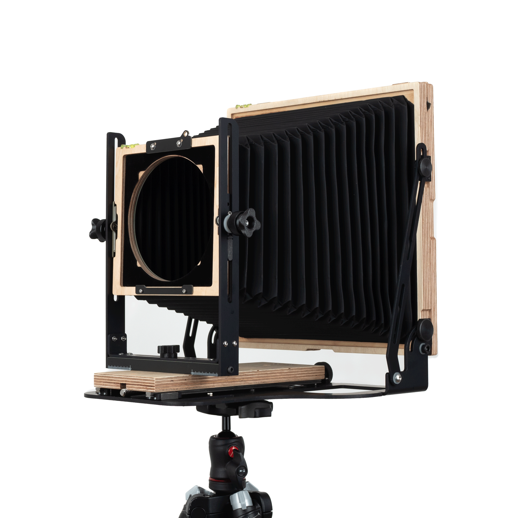 Large format lenses must be fixed to a lens board before being mounted onto the camera. Unlike other film formats, this means you can use pretty much any brand of lens on any large format camera. The Intrepid 8x10 uses 140mm x 140mm sized lens boards making it compatible with most Sinar boards.