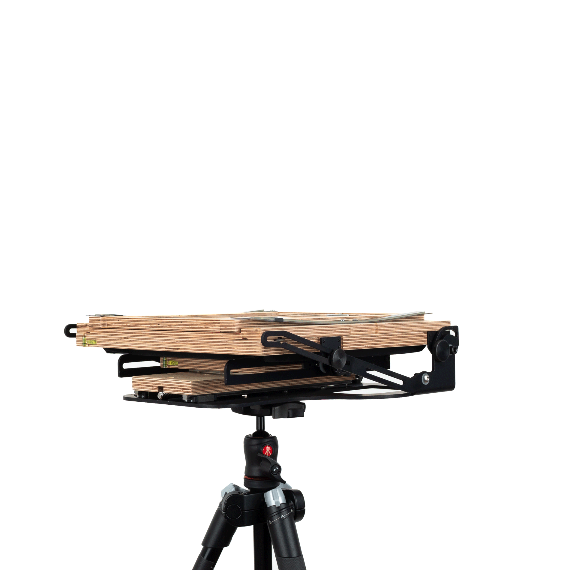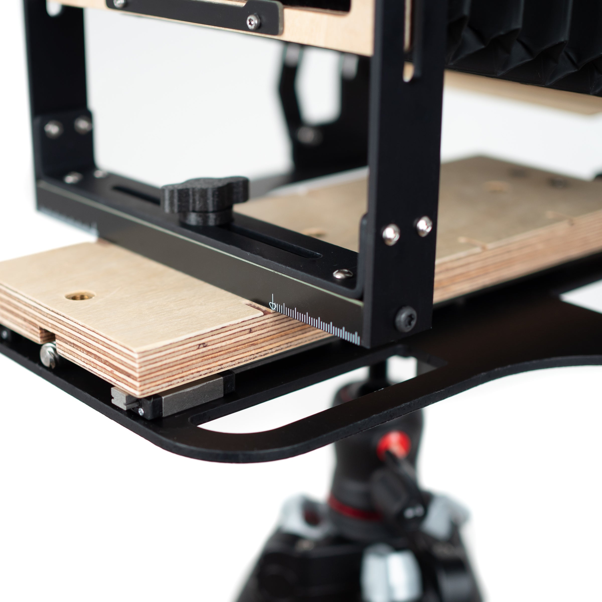 The aluminium base provides super stable support for the camera. The base also contains the linear focus guides, the focus wheel and mounts for the front standard (relating to what focal length of lens you are using.